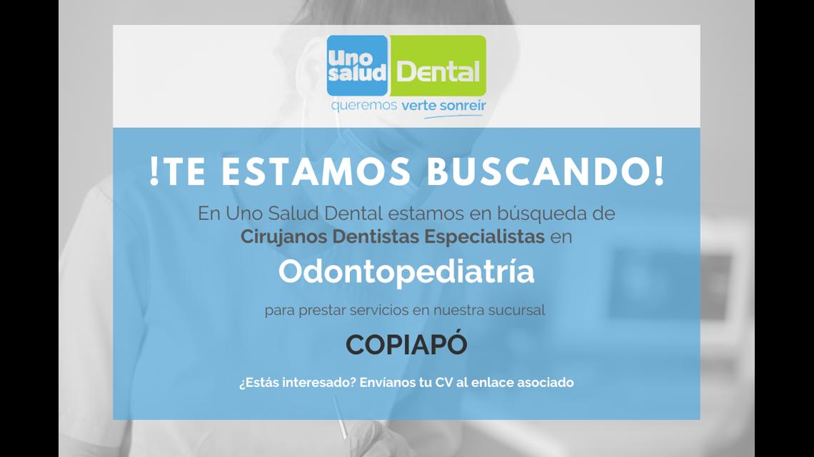 En Uno Salud Dental Copiapó, estamos en búsqueda de Cirujanos Dentistas Especialistas en Odontopediatría que quieran prestar servicios en nuestra sucursal de Copiapó.